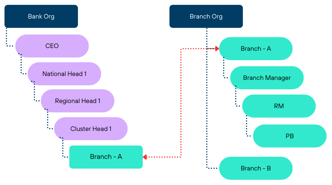 With a segregated tree for each Bank & Branch organization, we can have a structure that would simplify
