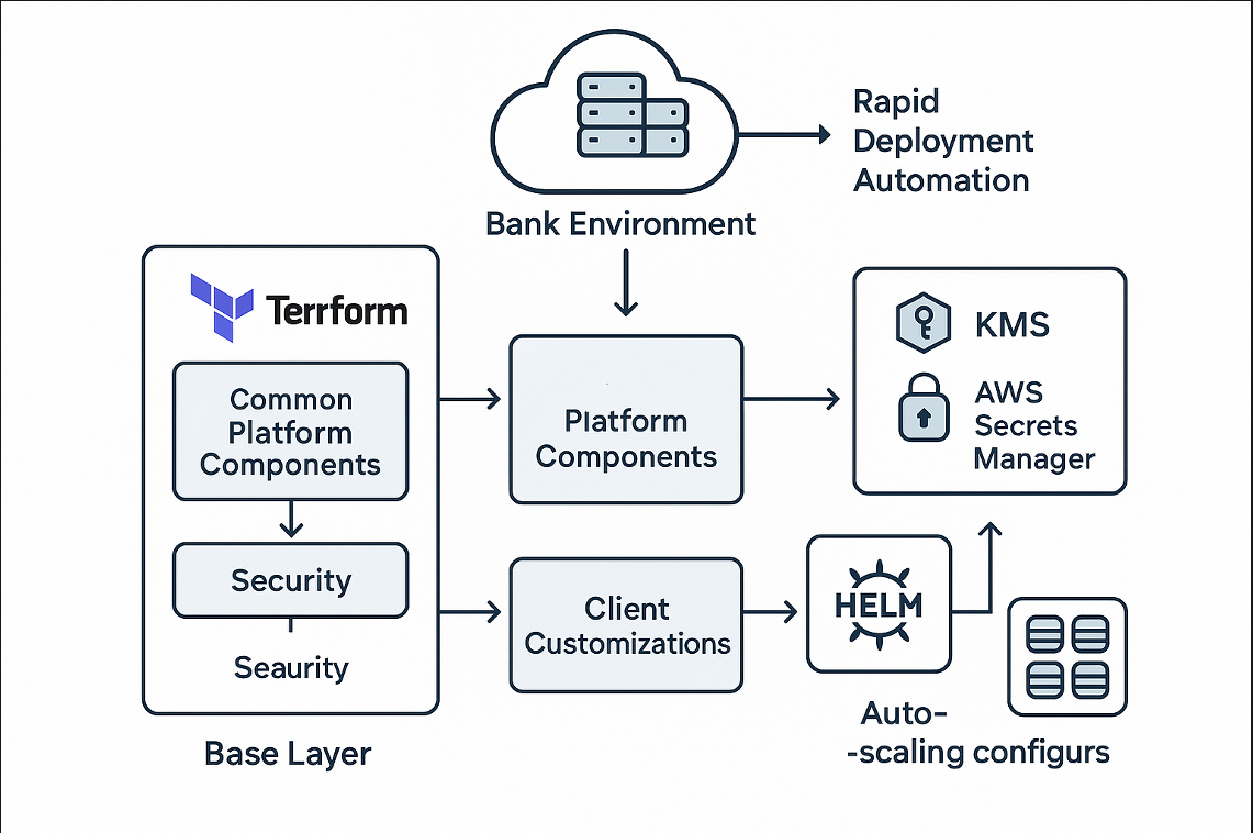 Revolutionized deployment efficiency through Terraform-based infrastructure automation, enabling rapid bank onboarding within minutes instead of weeks.